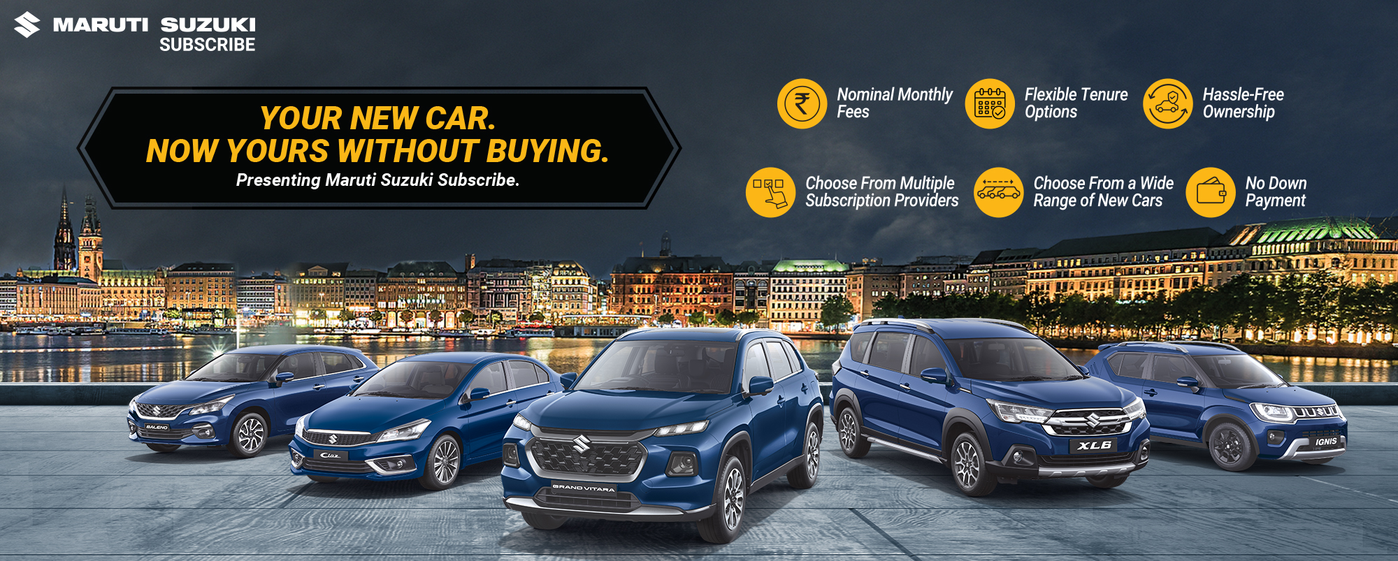 Maruti Suzuki Subscribe enables all customers to enjoy driving their preferred Maruti Suzuki cars without having to deal with all the financial responsibilities that come with owning a car.All you need to do is opt for a monthly subscription plan at a fixed monthly fee, which includes the routine maintenance and insurance costs, and choose a flexible tenure. At Perfect Auto in, , Rajkot, all Hatchback, Sedan, SUV, the MUV models line-up includes Baleno, Invicto, EVitara, Jimny, Ciaz, Ignis, Fronx, Grand Vitara, XL6. Here, you will enjoy Maruti Suzuki Subscribe benefits such as: